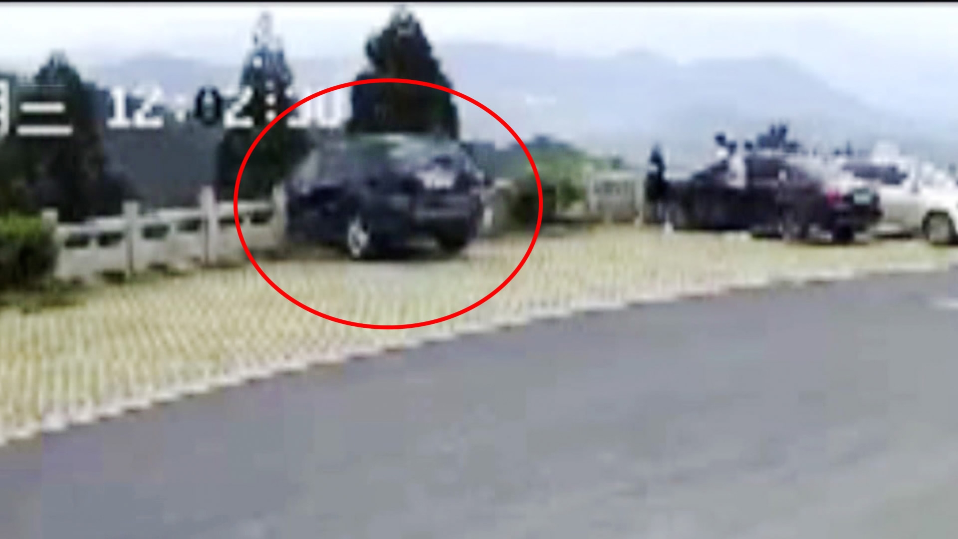 A man sent his car down a 20-meter slope after he accidentally pressed the accelerator instead of the brake when parking. Although the car was destroyed, the driver was not injured.