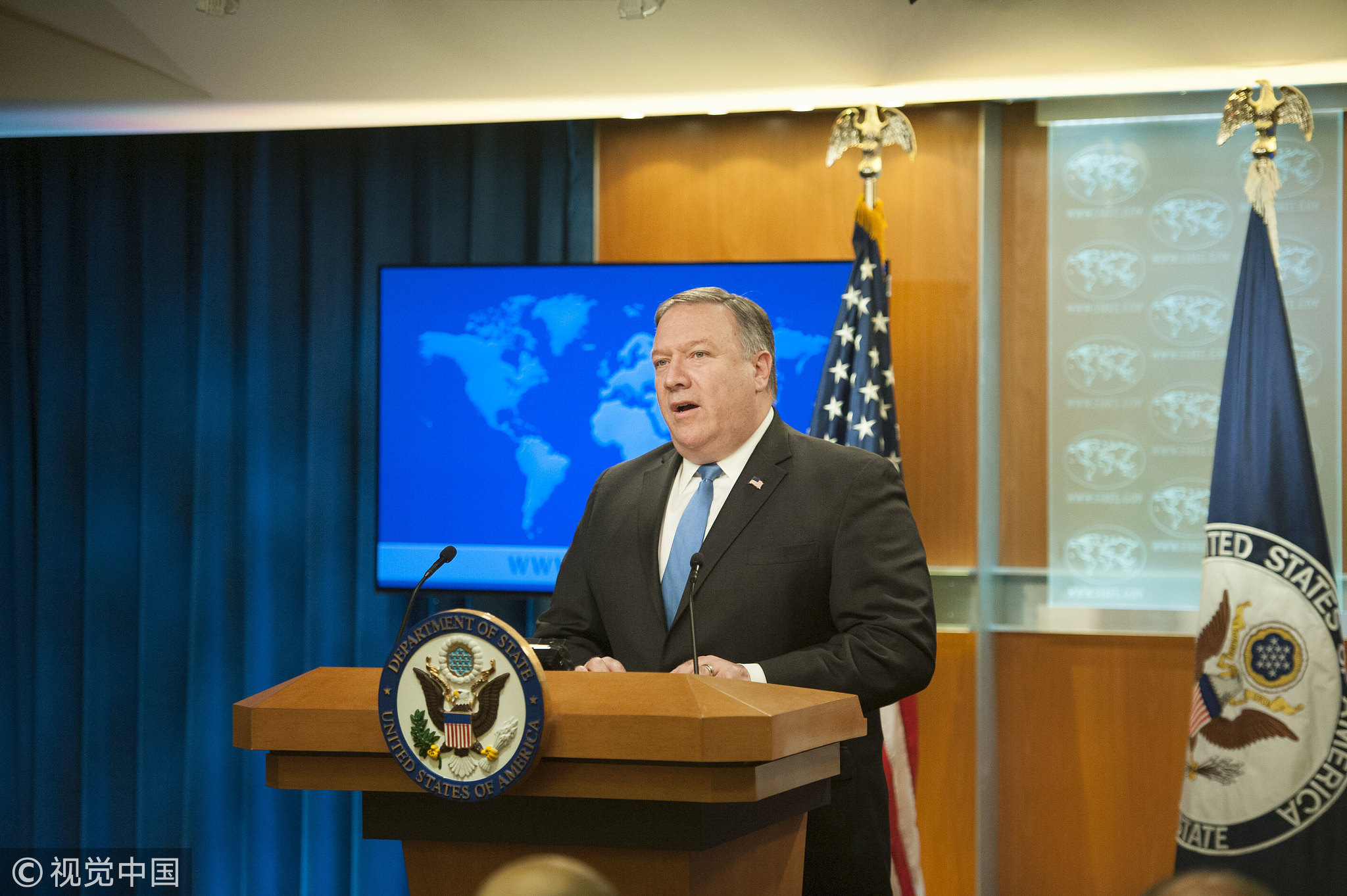 US Secretary of State Mike Pompeo announces the creation of the Iran Action Group that will coordinate and manage US policy toward Iran after withdrawing from the Iran nuclear deal, at the Department of State in Washington, DC, US, August 16, 2018. /VCG Photo