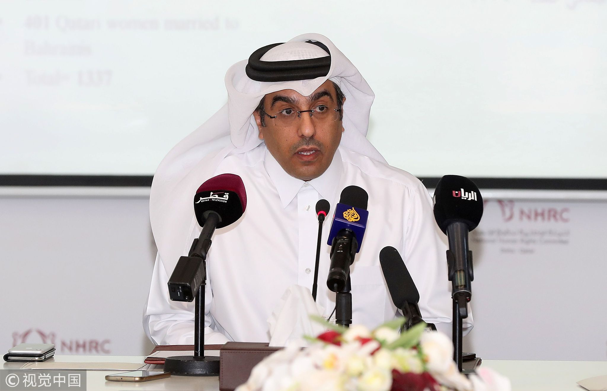 Ali bin Smaikh al-Marri, Chairman of Qatar's National Human Rights Committee, gives a press conference on the ultimatum issued by Saudi Arabia and its allies for the emirate's citizens to leave, in Doha, Qatar, June 8, 2017. /VCG Photo