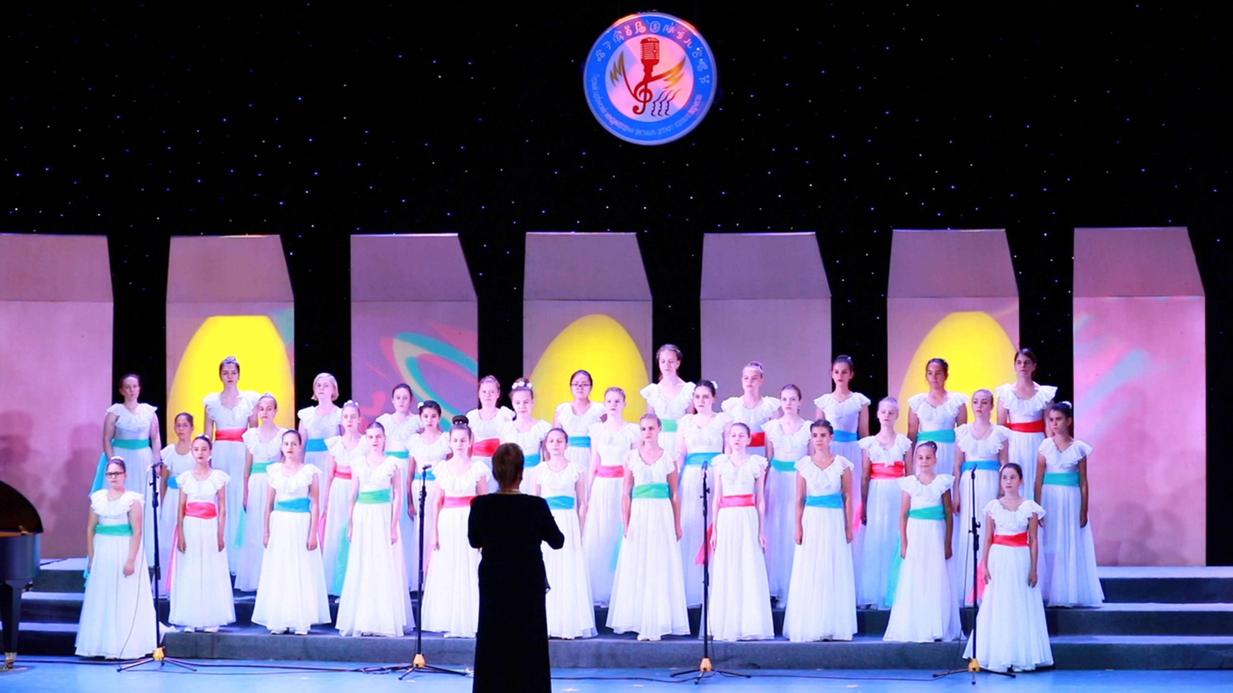 A 33-member-youth-choir from Russia’s Khabarovsk performs on stage. /CGTN Photo