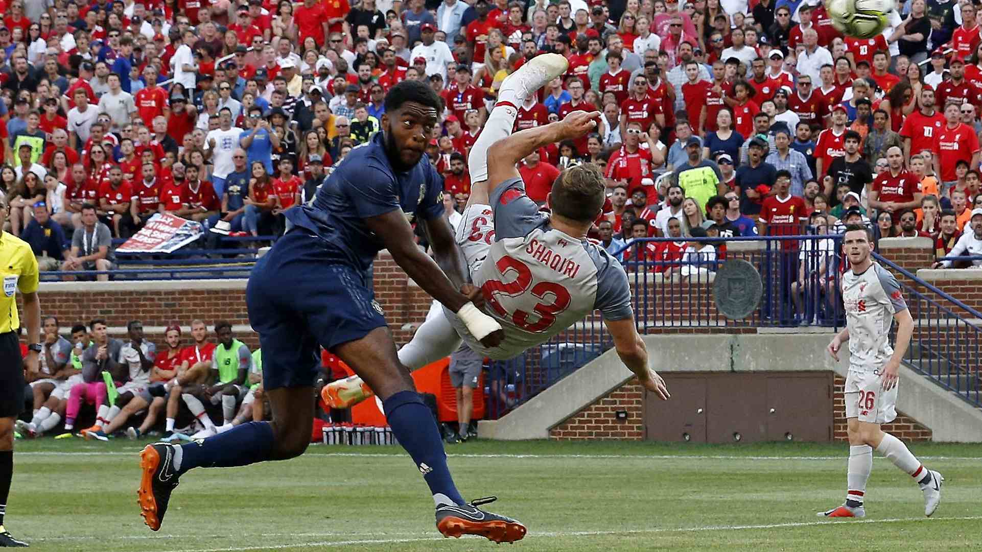 26-year-old Shaqiri did the heavy lifting on the play, outmuscling a United defender and then slipping a pass back to Sturridge who made it 2-1. Sheyi Ojo then scored off a spot-kick in the 74th minute. That set the stage for Shaqiri to bring the packed stadium to its feet eight minutes later with his overhead kick from inside the box off a nice feed from Ben Woodburn.