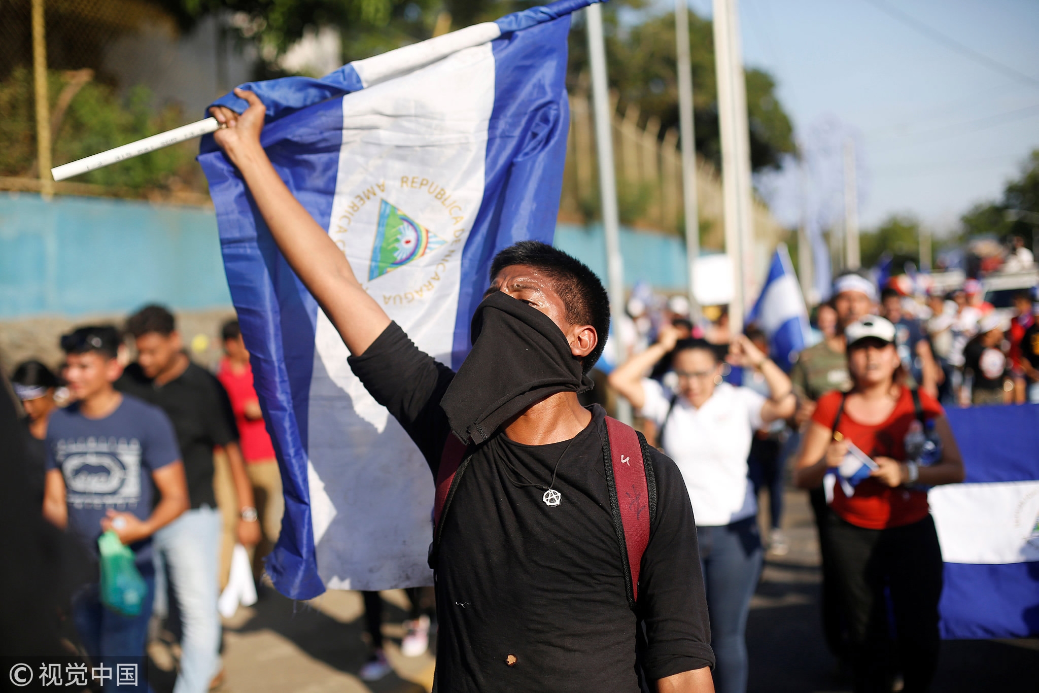 Hundreds of people, many of them youths wearing black and carrying Nicaragua's flag while yelling "Freedom!" and calling for Ortega's ouster, marched late Wednesday to demand justice for those killed and hurt during the protests.
