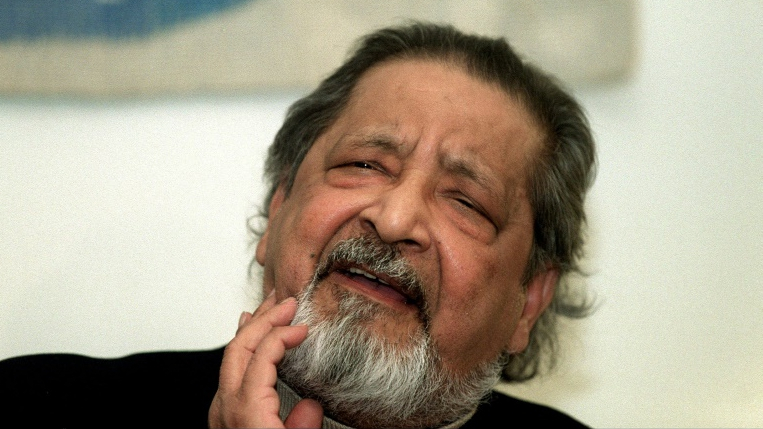 May 27, 2002: British author and winner of the 2001 Nobel Prize for Literature, V.S. Naipaul, pictured at a photocall before a conference in Madrid. /AFP Photo