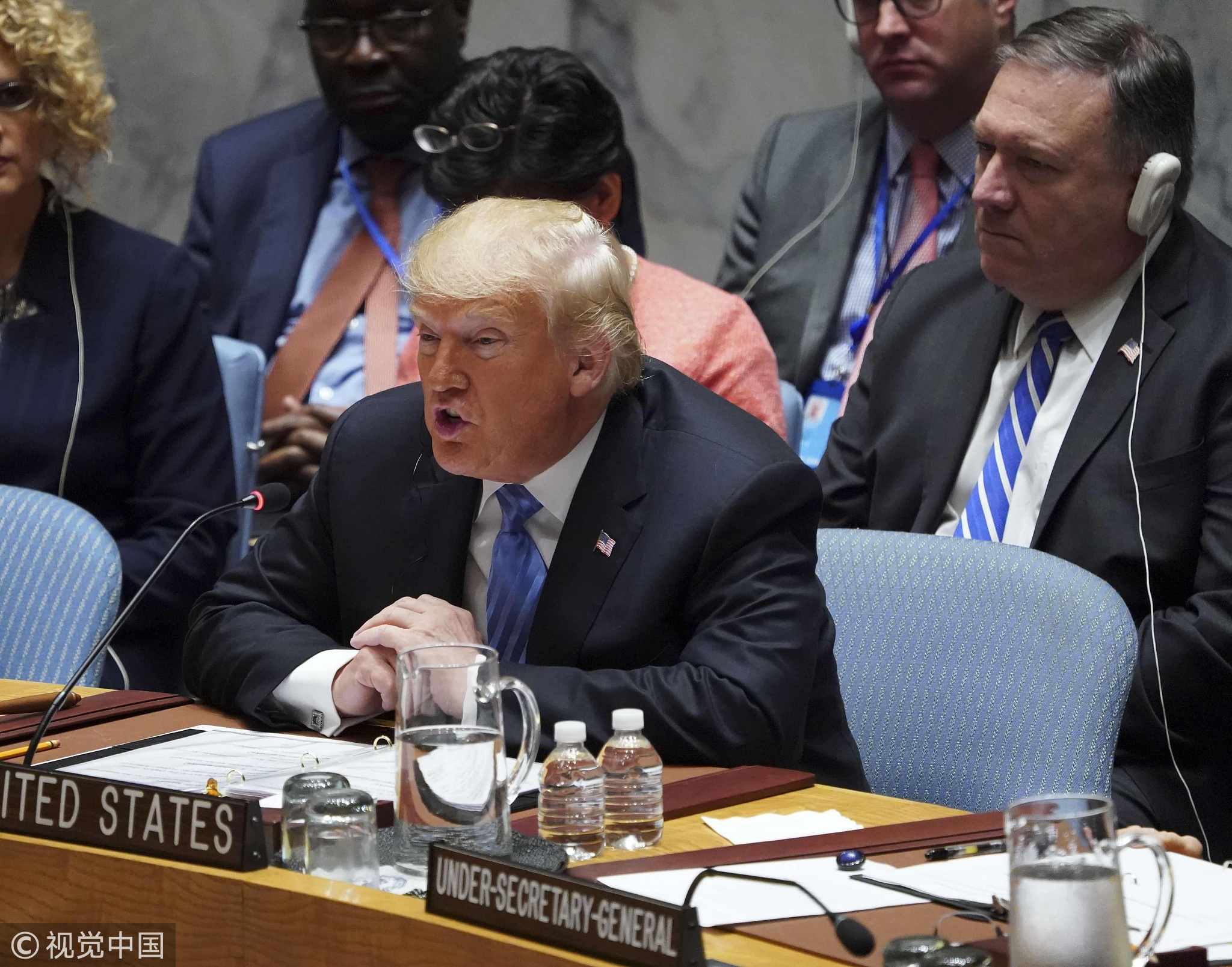 US President Donald Trump speaks during the United Nations Security Council briefing on counterproliferation at the United Nations in New York on the second day of the UN General Assembly September 26, 2018./VCG Photo