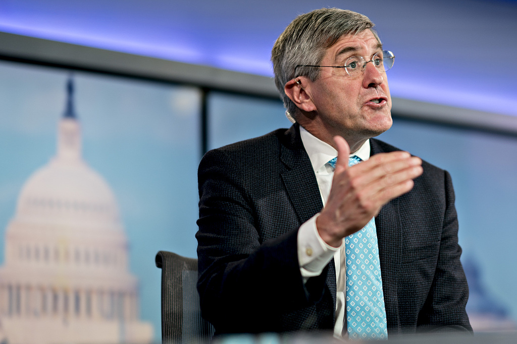 Stephen Moore, visiting fellow at the Heritage Foundation, speaks during a Bloomberg Television interview in Washington, D.C., the U.S., March 22, 2019. /VCG Photo
