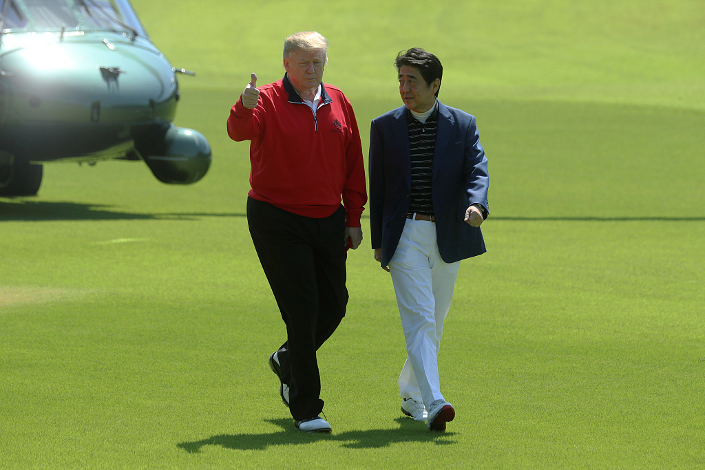 The meeting was the main event in a feel-good trip that started Saturday and has seen Abe and Trump playing golf, eating out, watching sumo and generally enjoying an all-Japanese weekend.