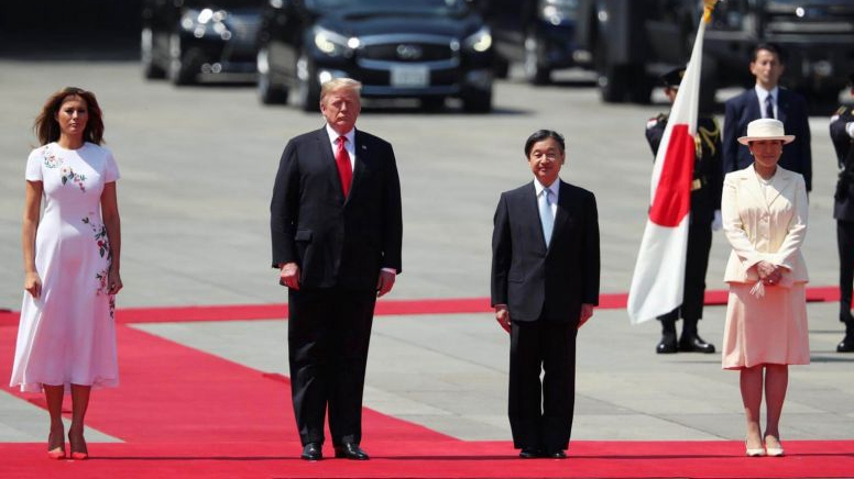 Trump was greeted by the new emperor and his wife at the imperial palace in Tokyo on Monday as part of a formal welcoming ceremony broadcast live on national television.