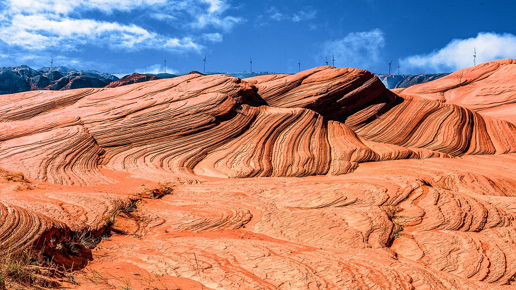 The Danxia landform refers to unique types of rock formations found in southeast, southwest and northwest China that “consist of a red bed characterized by steep cliffs.” Jingbian Wave Valley is one of the examples. Located in the southeast of Jingbian County, China's Gansu Province in the northwest, the place is characterized by its red sandstone landform covered by ridges that look like waves.