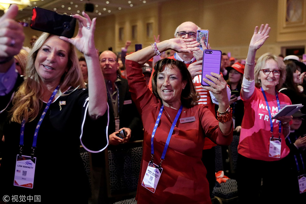 People cheer as U.S. President Donald Trump (not pictured) speaks at the Conservative Political Action Conference (CPAC) annual meeting at National Harbor near Washington, U.S., March 2, 2019. /VCG Photo