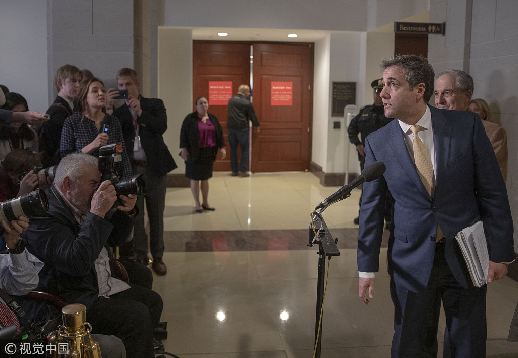 Michael D. Cohen talks to the media after testifying before the House Intelligence Committee in Washington on February 28, 2019. /VCG Photo