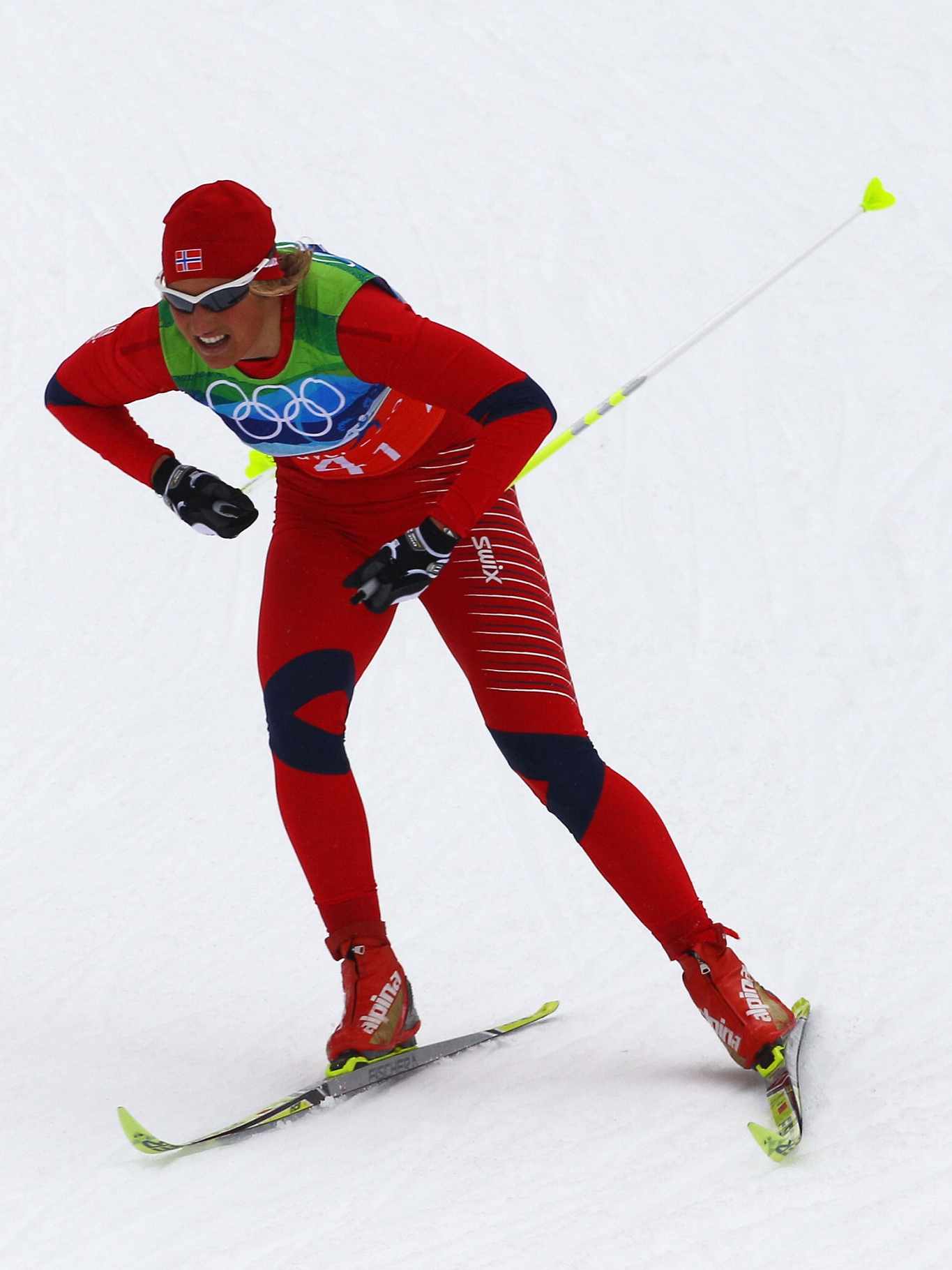 February 25, 2010: Vibeke W Skofterud of Norway competes during the Ladies' Cross Country 4x5 km Relay on day 14 of the 2010 Vancouver Winter Olympics at Whistler Olympic Park Cross-Country Stadium in Whistler, Canada. /VCG Photo