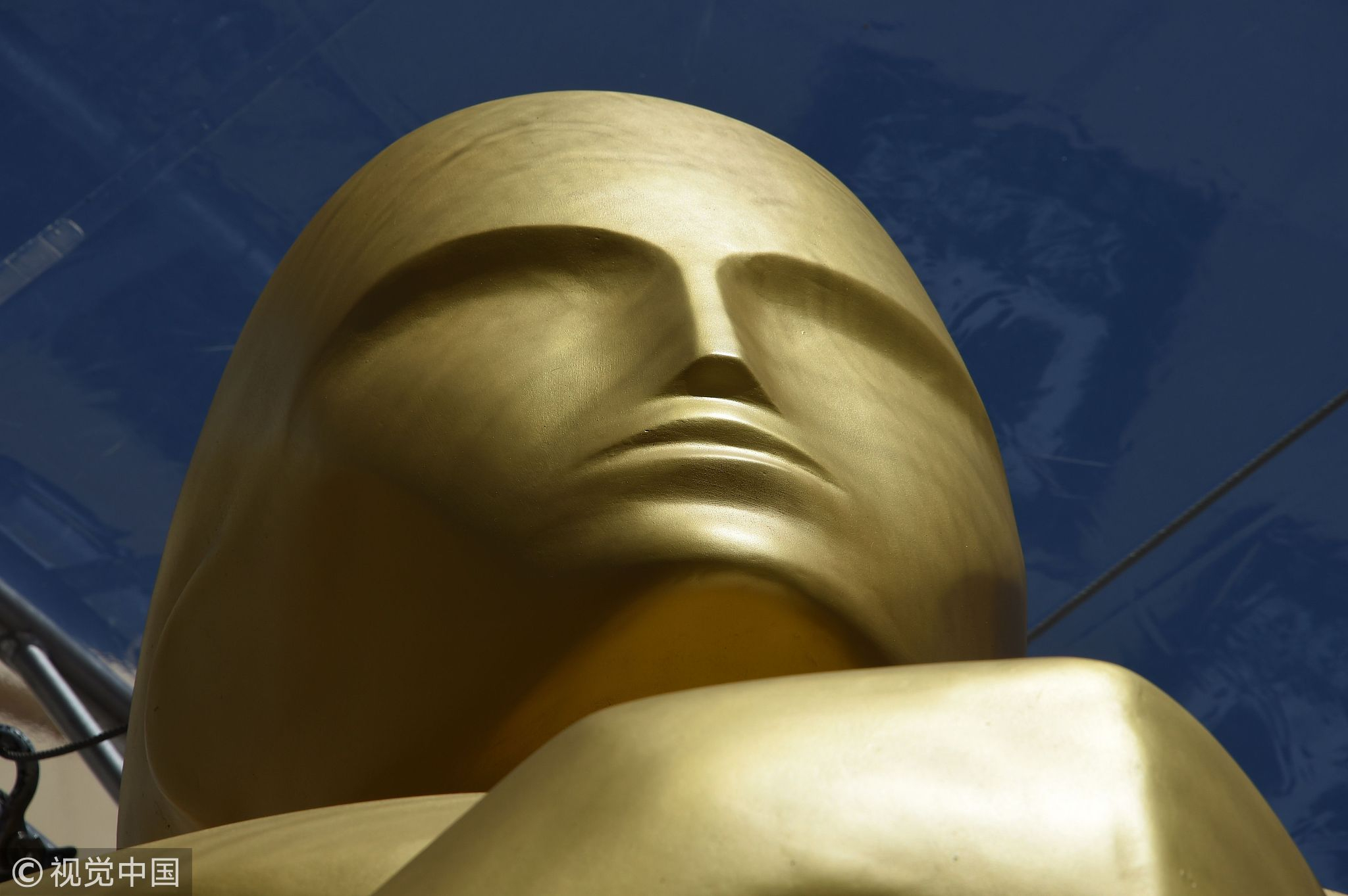 An Oscar statue stands during preparations for the 90th annual Academy Awards week in Hollywood, California. /VCG Photo