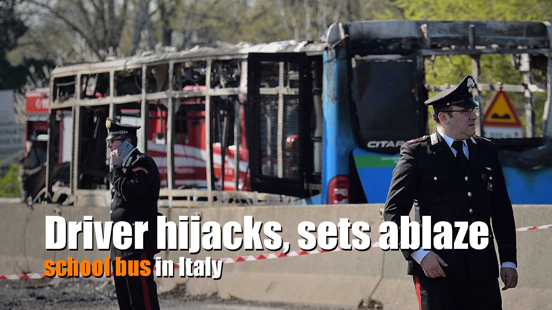 An Italian man was arrested in Milan, Italy after he hijacked and set fire to a school bus carrying 51 children to apparently protest against the deaths of asylum seekers in the Mediterranean Sea. Twelve kids and two adults were hospitalized after inhaling toxic fumes, all are out of danger.