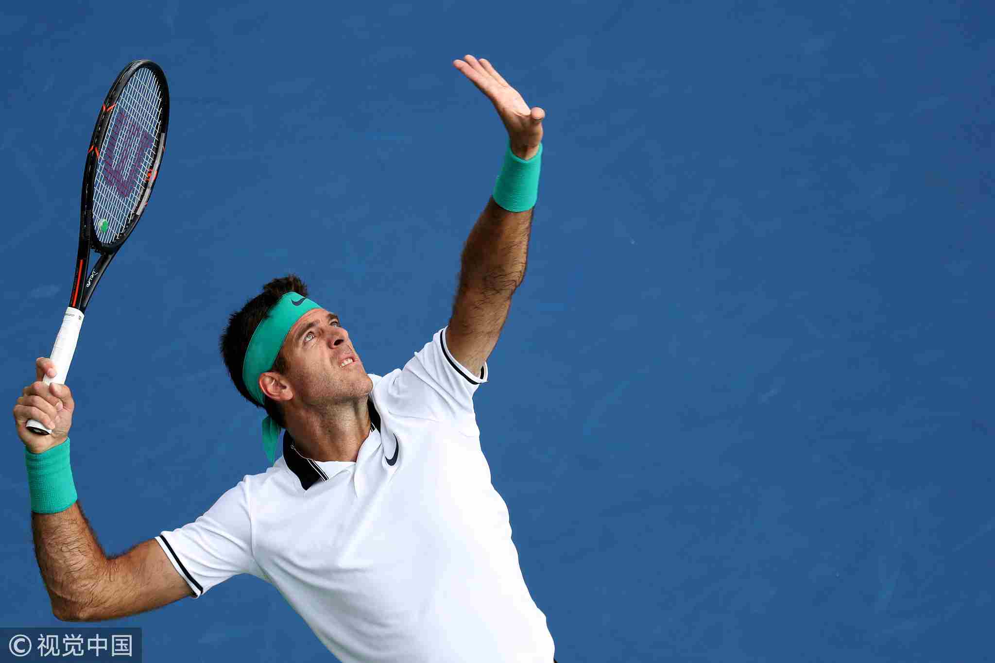 Juan Martin Del Potro of Argentina serves to Hyeon Chung of Korea during the match on August 16, 2018 in Mason, Ohio. /VCG Photo