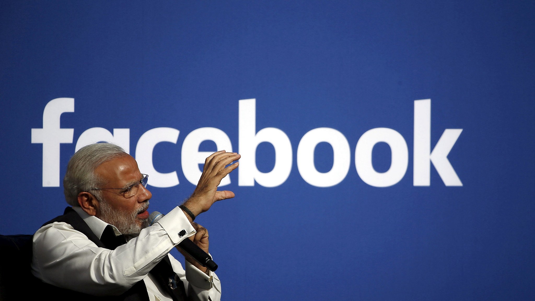 Indian Prime Minister Narendra Modi speaks on stage during a town hall at Facebook's headquarters in Menlo Park, California, Sept. 27, 2015. /VCG Photo