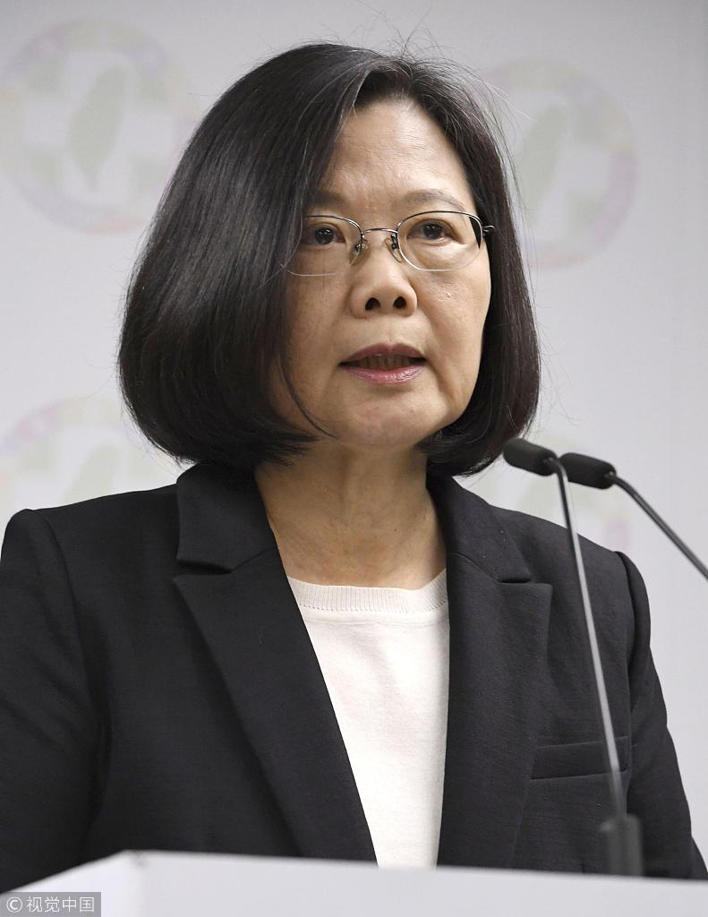 Taiwan leader Tsai Ing-wen holds a press conference at the headquarters of the Democratic Progressive Party in Taipei , November 24, 2018. /VCG Photo