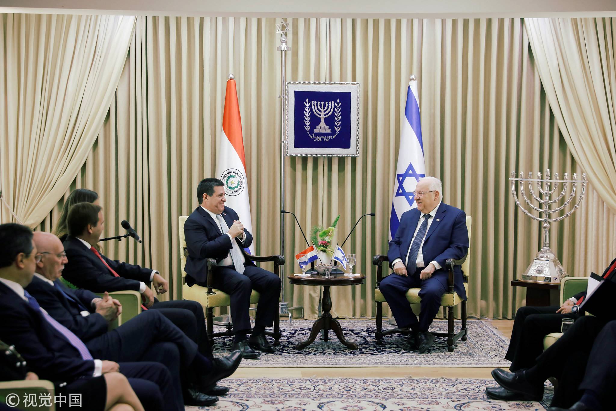 (Cover: Israeli President Reuven Rivlin embraces Paraguayan President Horacio Cartes upon his arrival for a meeting at his residence in Jerusalem, ahead of the dedication ceremony of the embassy of Paraguay in Jerusalem, May 21, 2018. /VCG Photo)