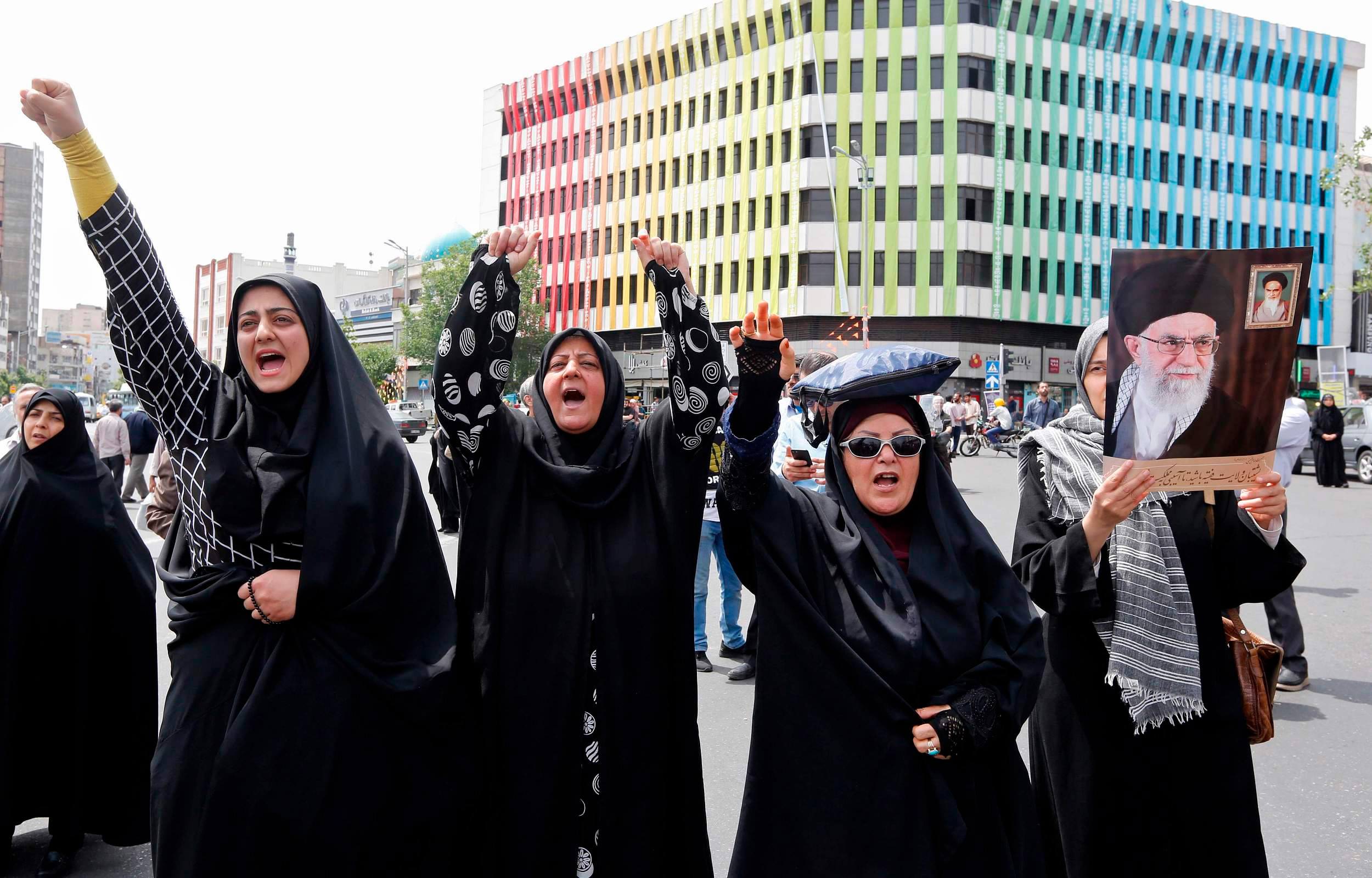 Iranian women chant anti-US slogans during a demonstration after Friday prayer in the capital Tehran on May 11, 2018. /VCG Photo