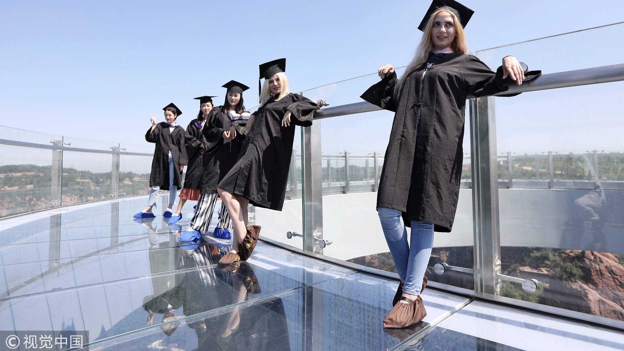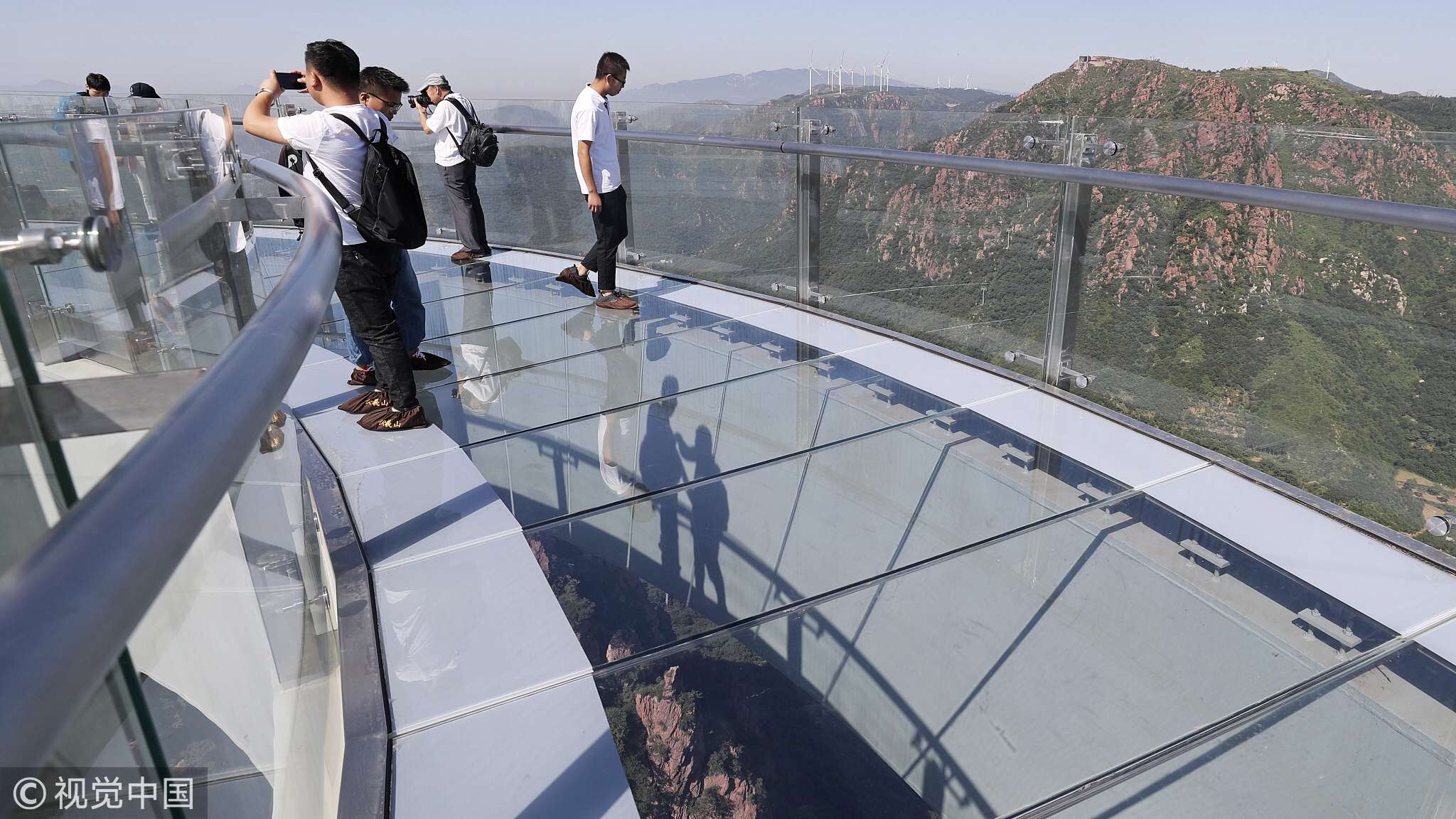 Not everyone will be as chill standing on the glass-bottomed bridge some 360 meters above the ground. / VCG Photo