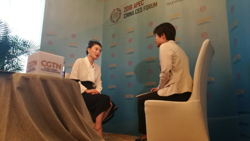 Qi Yan, CEO of Daling Family, speaks with CGTN's Sun Ye at the APEC China CEO Forum in Beijing on July 6./CGTN Photo