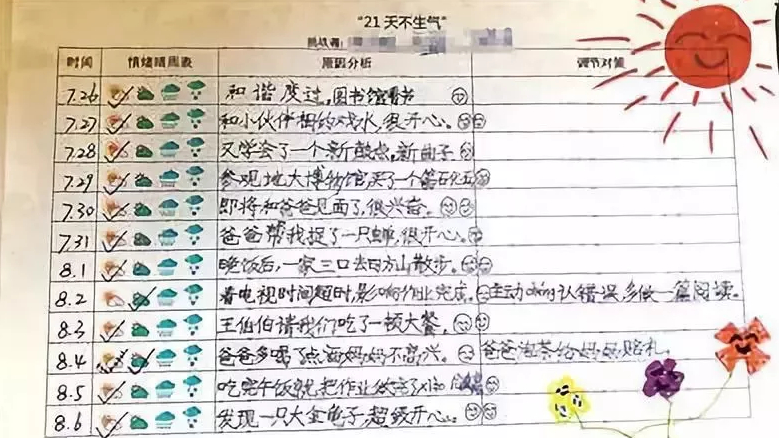 To do the homework students and parents had to fill out a 'diary' by describing their moods as weather. /Screenshot via Wechat