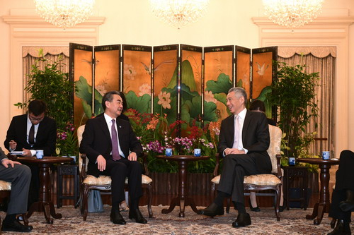 Wang also held a bilateral meeting Friday with Singapore’s Prime Minister Lee Hsien Loong at the Istana palace.