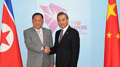 Wang also held talks with Ri Yong Ho, foreign minister of the Democratic People's Republic of Korea (DPRK), who may meet with US Secretary of State Mike Pompeo at the ASEAN Regional Forum this weekend.