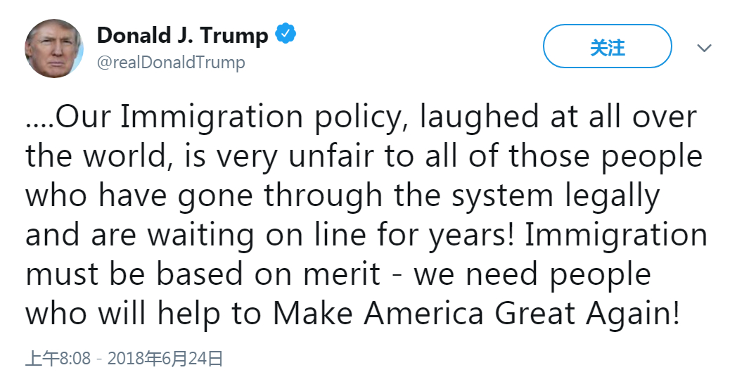 Trump's tweets on Sunday came after a week of global outcry over images and video of crying children and their distraught parents separated at the US-Mexico border. Critics in Trump's Republican Party, as well as his wife and daughter, urged him to abandon the policy.