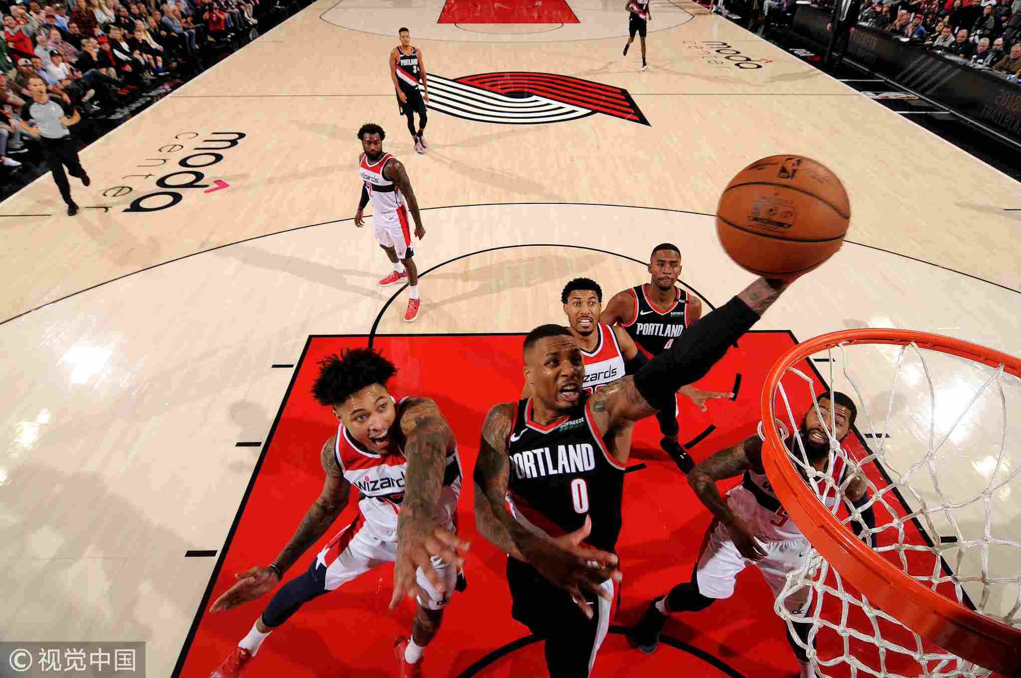 Damian Lillard #0 of the Portland Trail Blazers shoots the ball against the Washington Wizards, October 22, 2018, at the Moda Center in Portland, Oregon. /VCG Photo