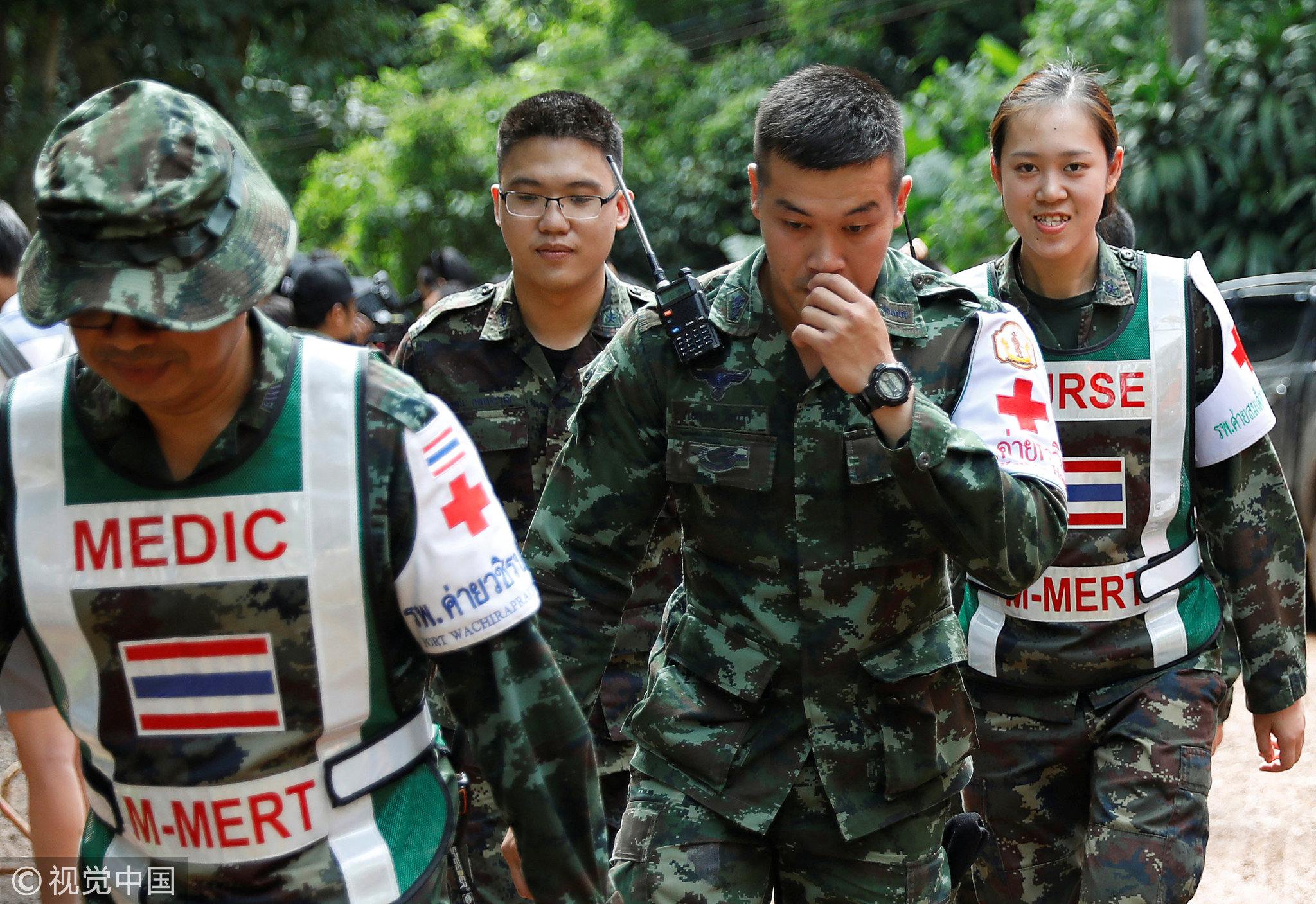Soldiers are seen near the Tham Luang cave complex in the northern province of Chiang Rai, Thailand, July 4, 2018. /VCG Photo