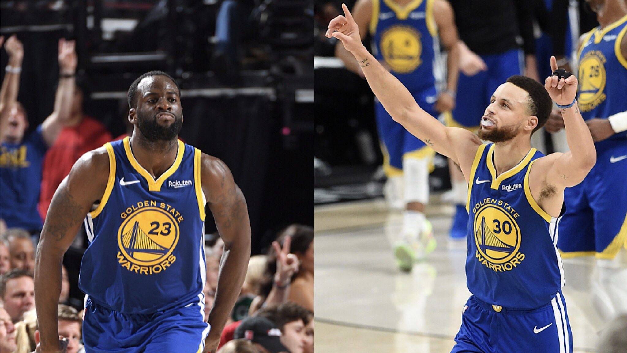 Stephen Curry #30 and Draymond Green #23 of the Warriors in the game against the Trail Blazers, May 20, 2019. /VCG Photo
