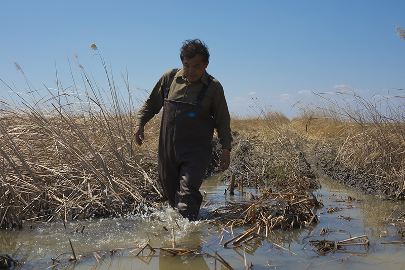 In order to find the evidence of stealing eggs, Fu walks in the wetlands.