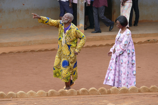 An elderly couple head to a polling station in Yaounde. /CGTN Photo