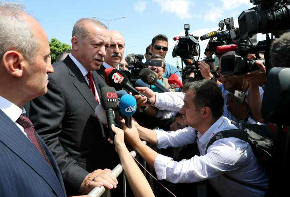 Turkish President Tayyip Erdogan talks to media in the Black Sea city of Ordu, August 11, 2018. /Reuters Photo