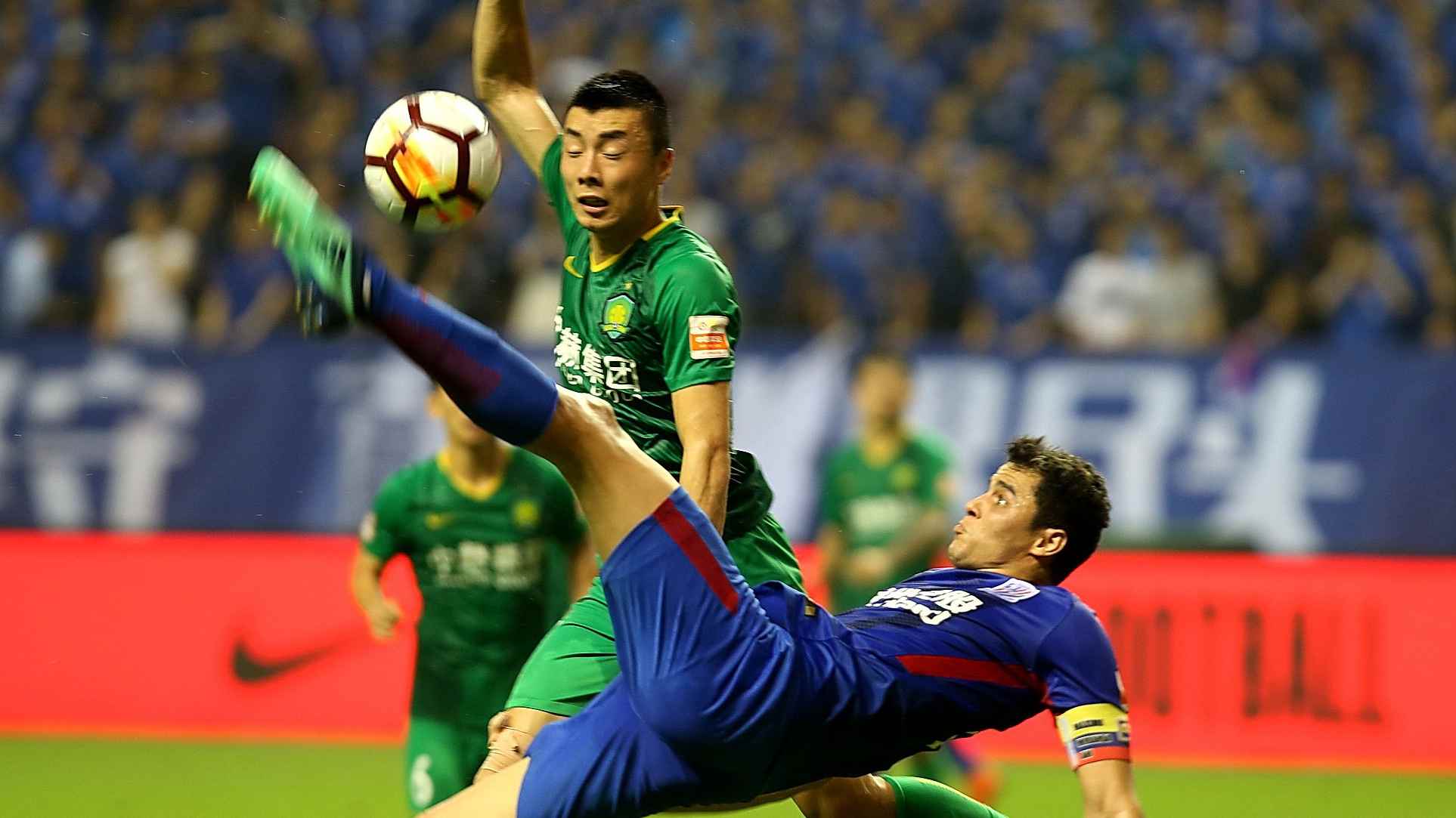 Beijing Guoan were playing their second consecutive match in Shanghai on Saturday. After edging SIPG 5-4 on penalties in the quarter-finals of the Chinese FA Cup midweek, the capital club took on Shenhua in the Chinese Super League, looking for three points to consolidate their position on top of the standings.