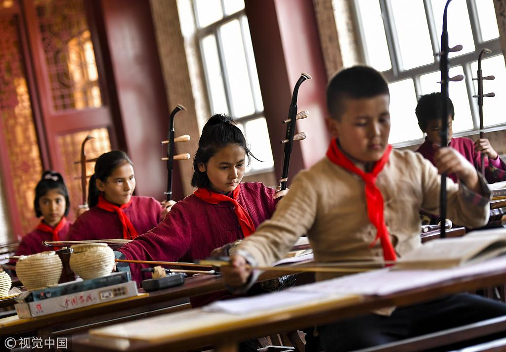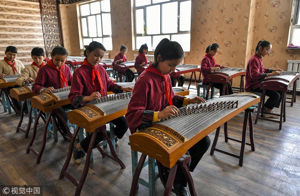 According to China News, teachers and folk artists have been teaching the courses of erhu, guzheng, Beijing opera, Chinese calligraphy, waist drum, etc. /VCG Photo