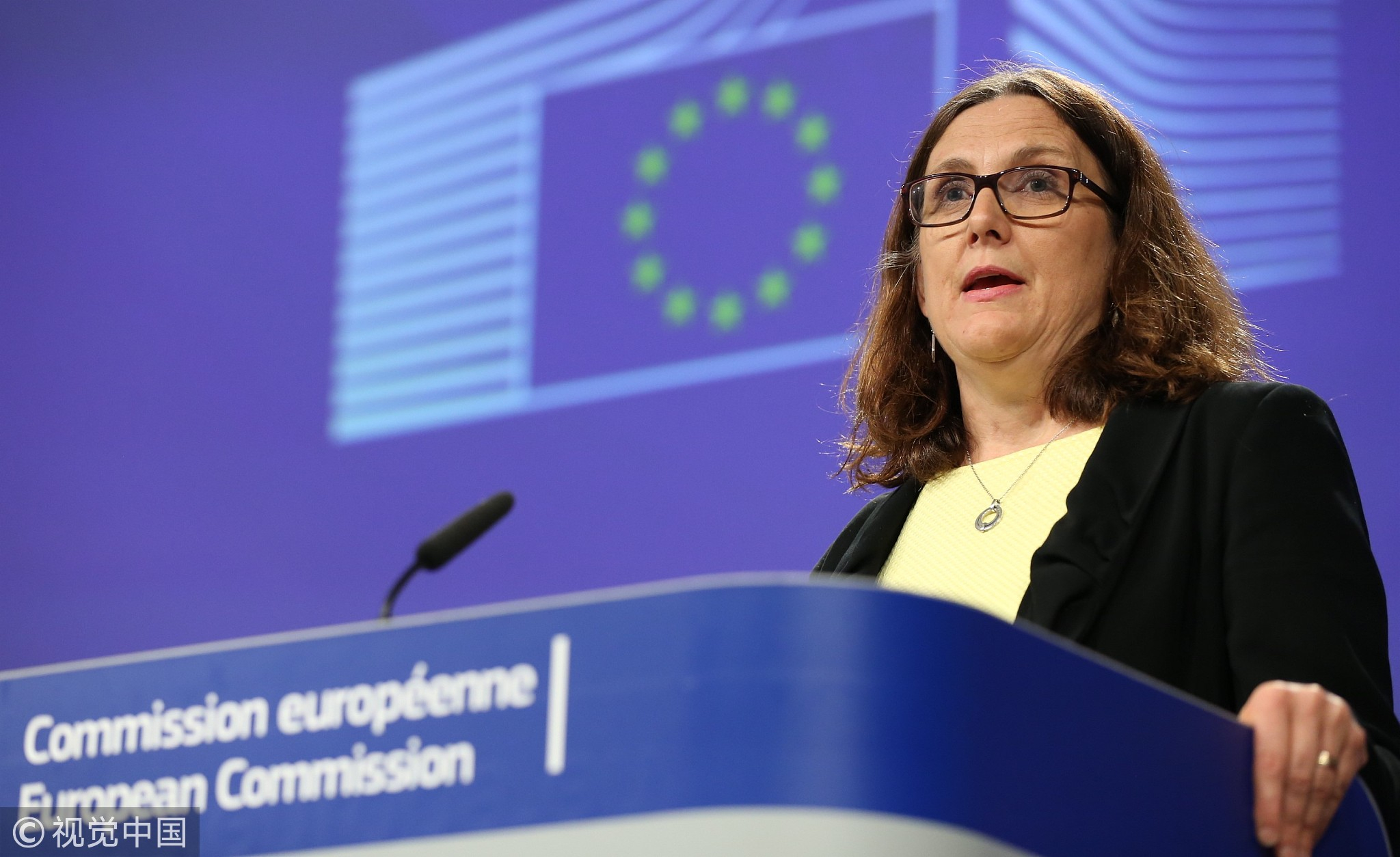 European Union (EU) Trade Commissioner Cecilia Malmstrom holds a press conference on the US restrictions on steel and aluminum affecting the EU in Brussels, June 1, 2018. /VCG Photo