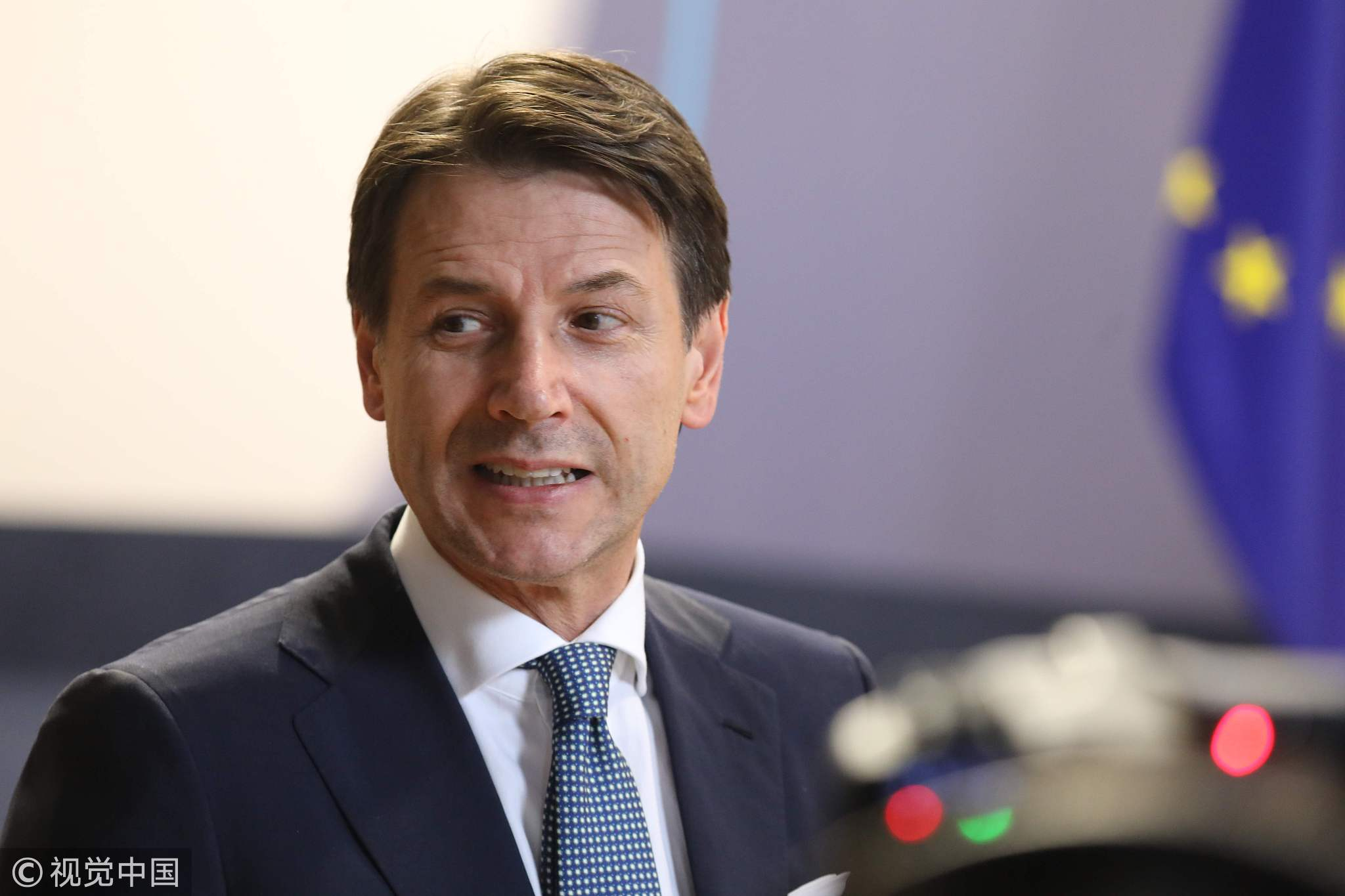 Italian Prime Minister Giuseppe Conte speaks to the press before leaving after the first day of the European Council in Brussel, June 29, 2018. /VCG Photo