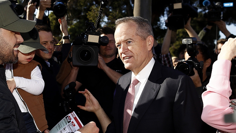 (Top image: Leader of the opposition Bill Shorten talks to locals at Moonee Ponds West Primary School in his electoral district of Maribyrnong, on May 18, 2019./ VCG Photo)