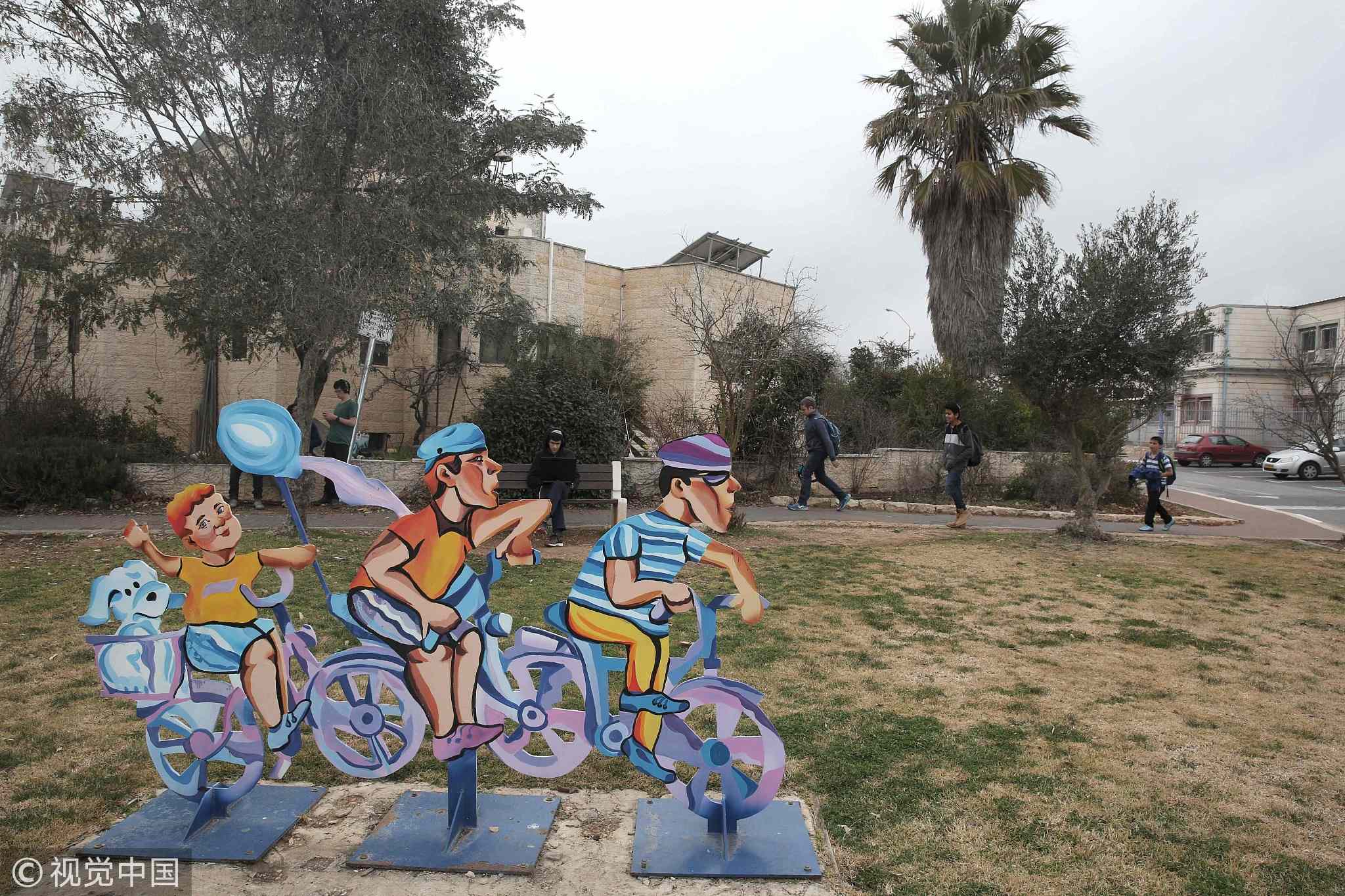 Israeli children walk in settlement of Beit El near the West Bank city of Ramallah, January 25, 2017. /VCG Photo