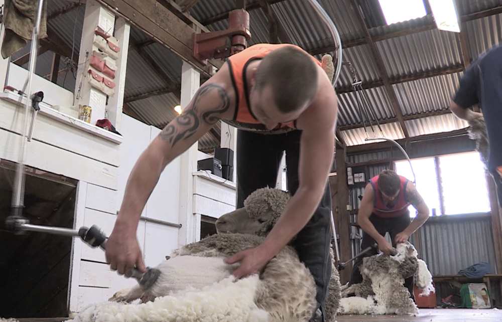 Australian farmers shear sheep on a farm near Walcha, New South Wales. /CGTN Photo