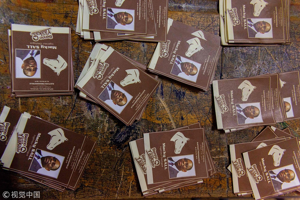 Macky Sall ballot papers are seen at the Dakar Plateau Adja Mame Yacine Diagne School in Dakar, February 24, 2019. /VCG Photo