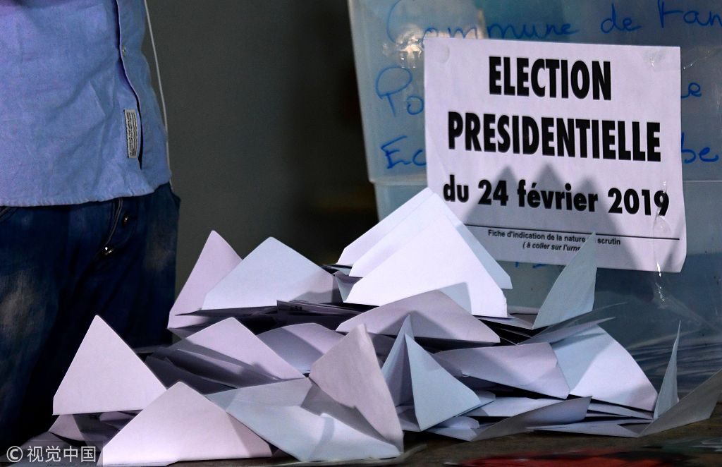 Electoral commission officers count votes during the presidential election at a polling station in Dakar, February 24, 2019. /VCG Photo