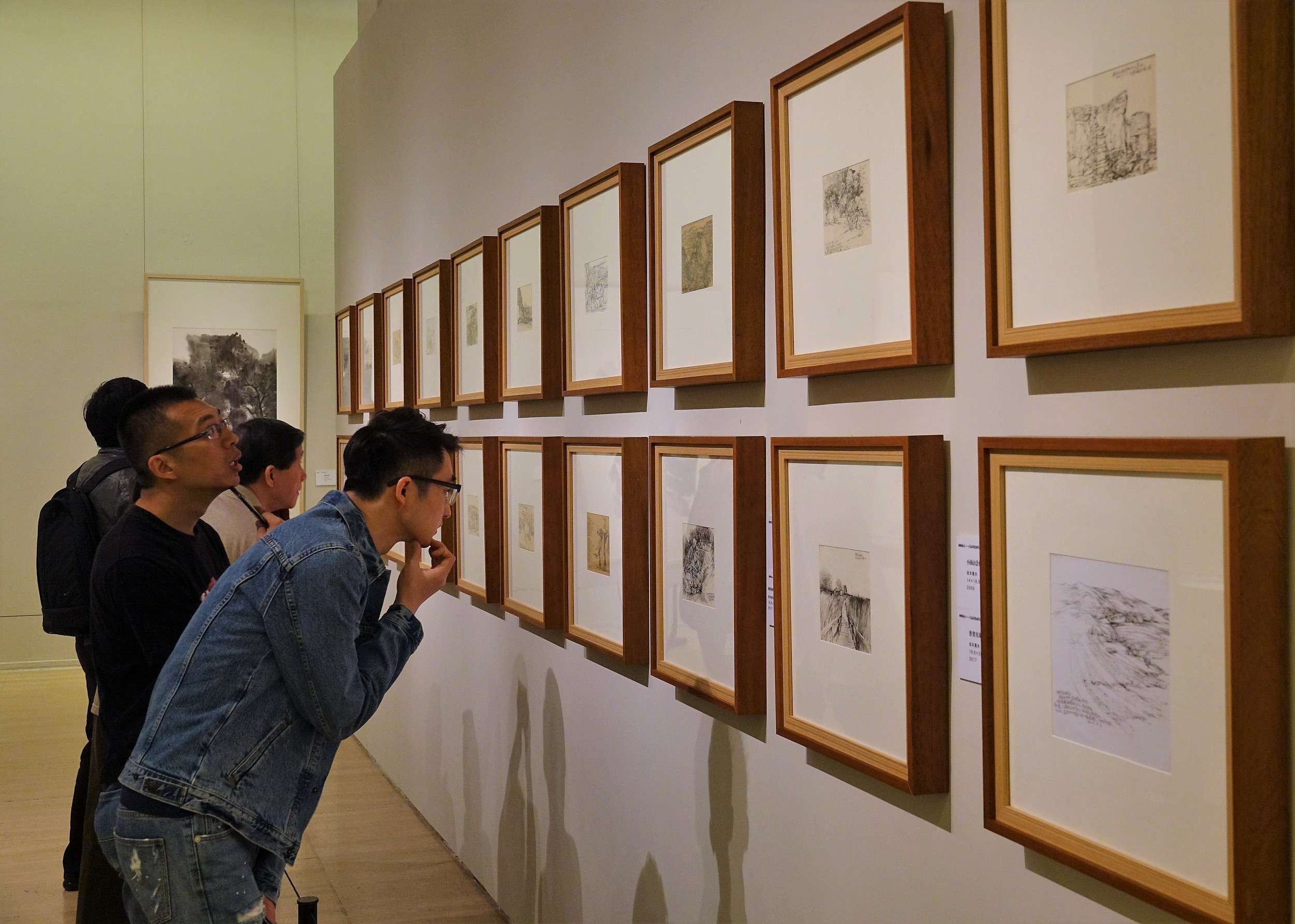 People are watching the Chinese paintings in a gallery. /CGTN Photo