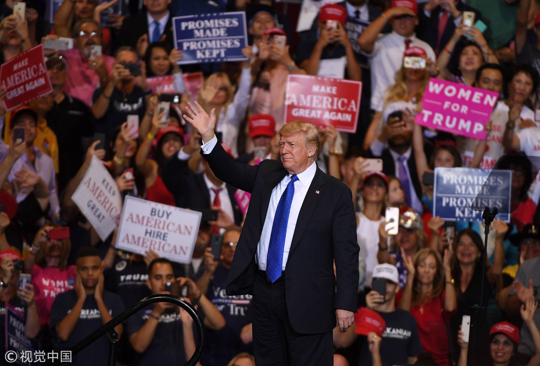 US President Donald Trump waves as he walks onstage for a campaign rally in Las Vegas, Nevada, September 20, 2018. /VCG Photo