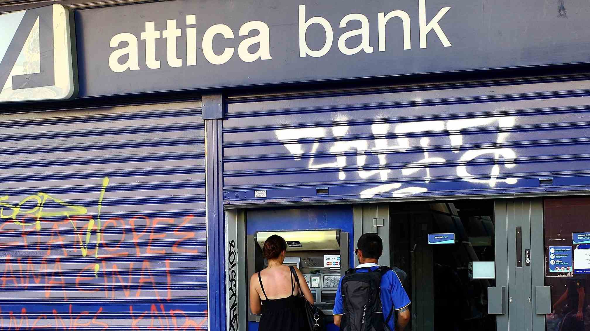 People withdraw money from a cashpoint at a bank in Monastiraki on June 21, 2011 in Athens, Greece. /VCG Photo