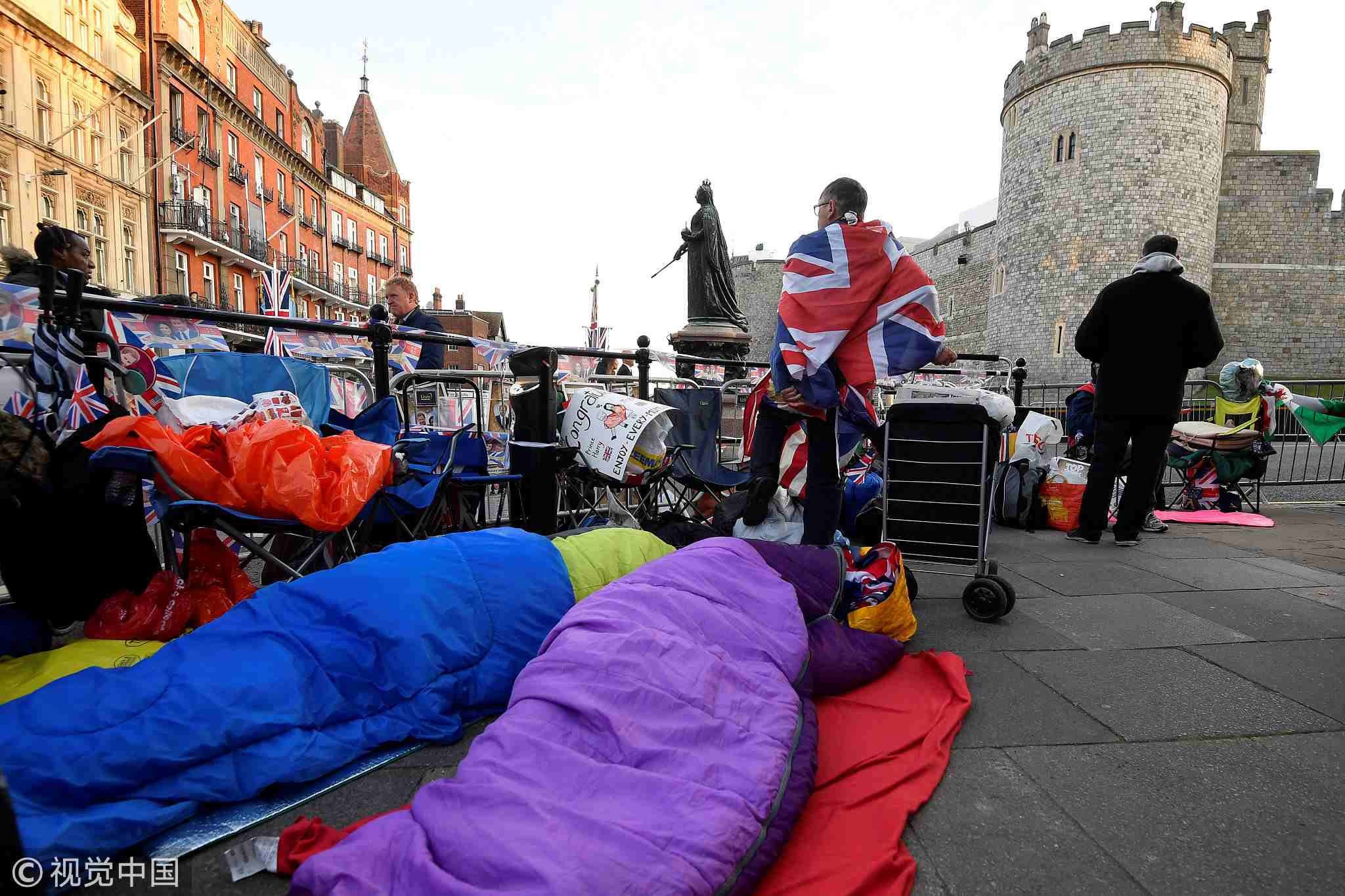 Royal fans awake at first light having spent the night outside of Windsor Castle. /VCG Photo