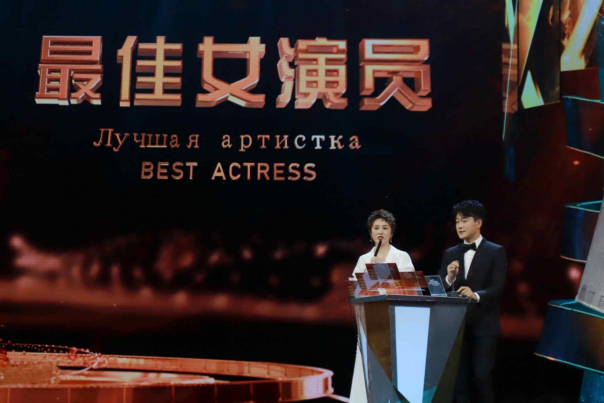 Actress Ma Li (L) and Actor Tong Dawei (R) are presenting the Best Actress award. /CGTN Photo