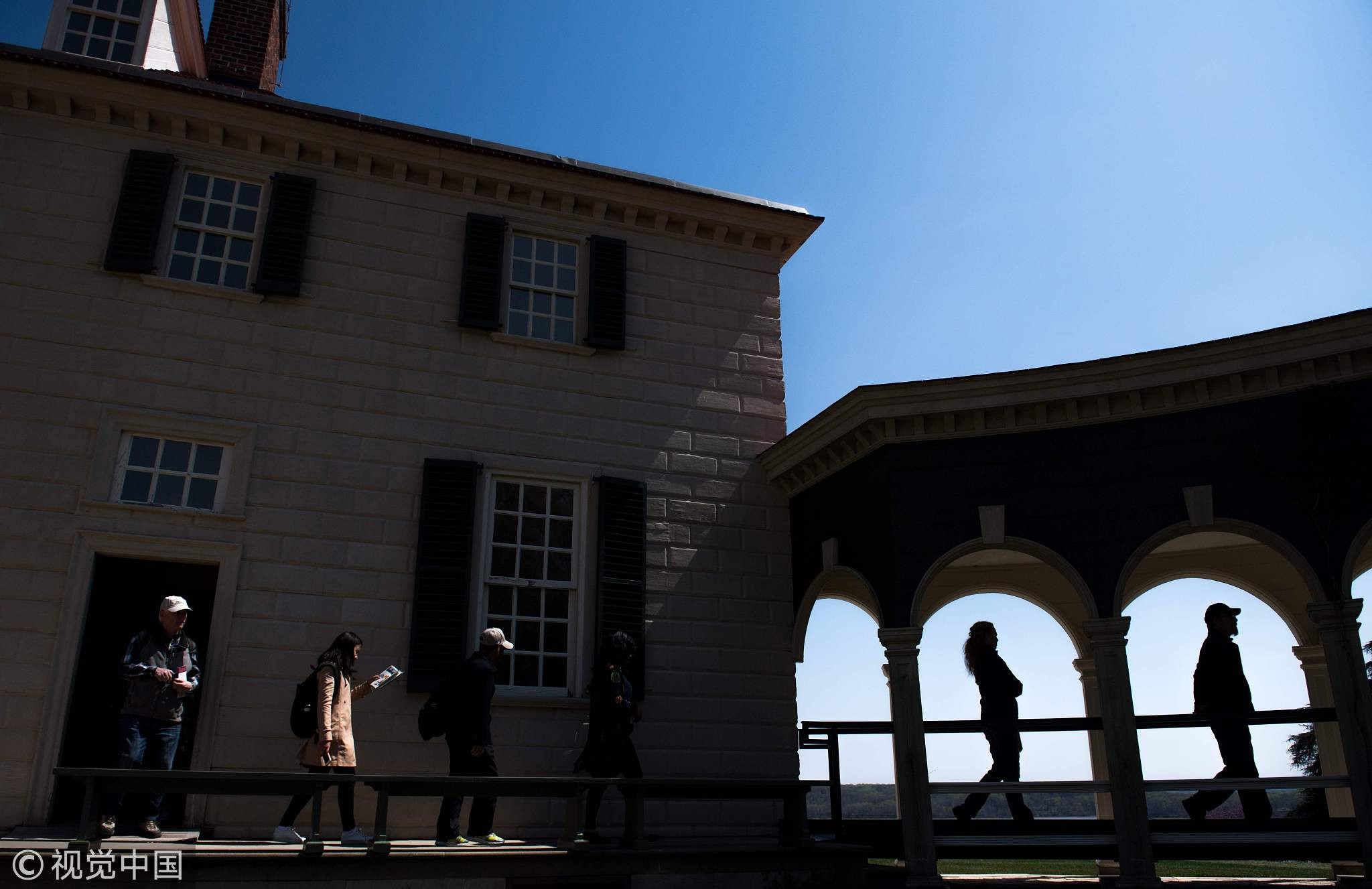 Visitors tour the Mansion at Mount Vernon, the estate of the first US President George Washington, in Mount Vernon, Virginia, April 18, 2018, prior to the historic site hosting next week's scheduled dinner between US President Donald Trump and French President Emmanuel Macron. /VCG Photo