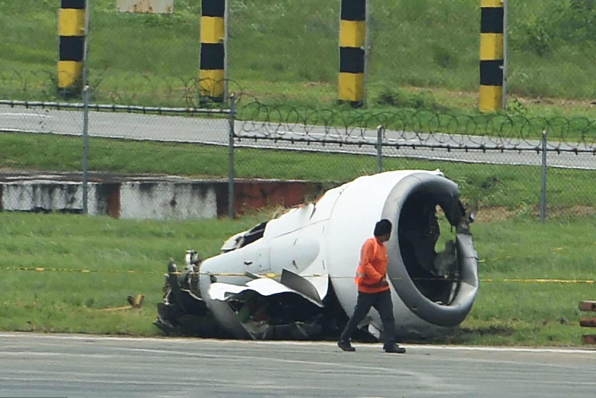 The Xiamen Airlines flight MF8667 from Xiamen in China landed on its second attempt at the Manila International Airport before skidding onto the grass, ripping off its left engine and blocking the runway late Thursday evening.